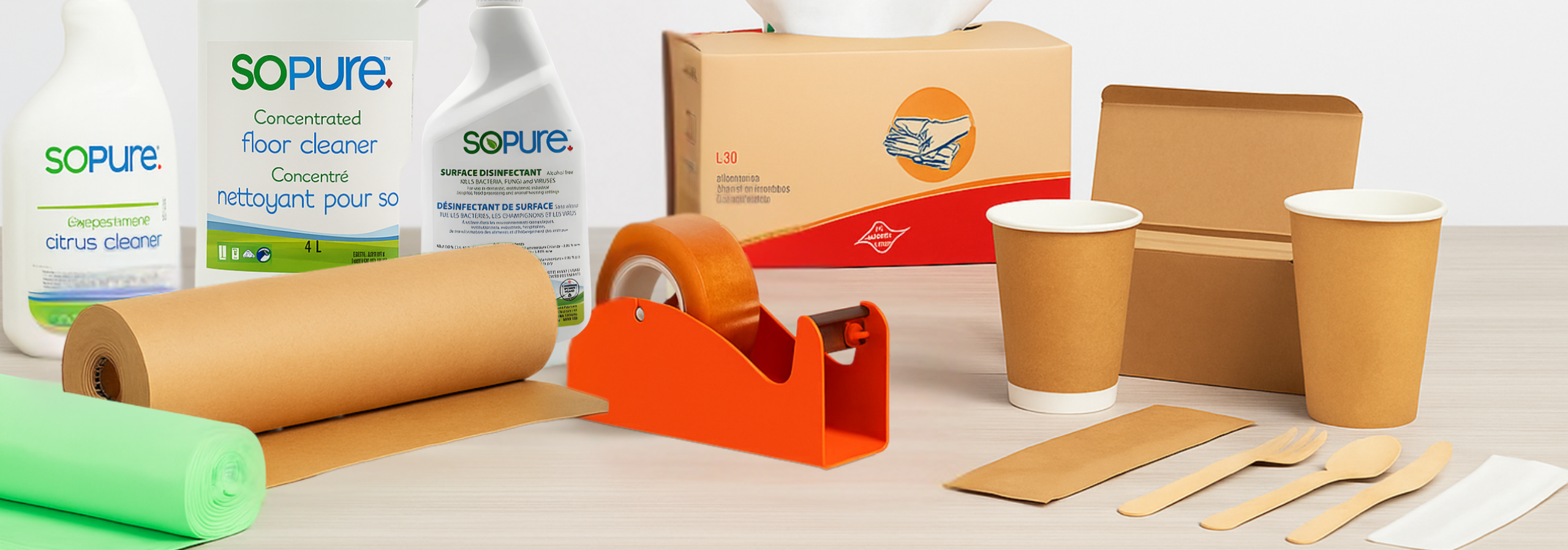 Every item in our catalog meets the highest environmental standards. From compostable packaging to ÉcoLogo-certified cleaning products, we ensure your business gets reliable, high-quality solutions that make compliance simple and sustainability effortless.
