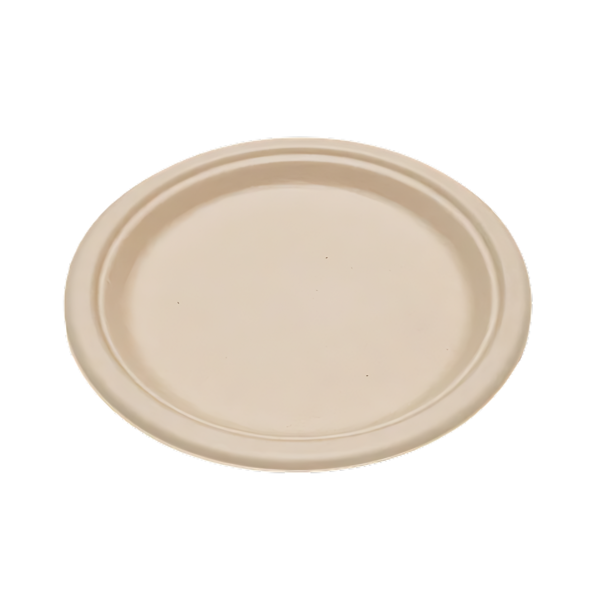 These plates are made from bagasse (sugarcane fibre) and are unbleached. They are 100% certified BPI compostable and PFAS-free.